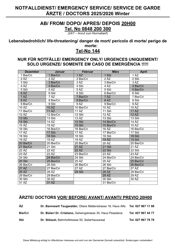 Pharmacie / Pharmacy Bahnhofstrasse 5 3920 Zermatt